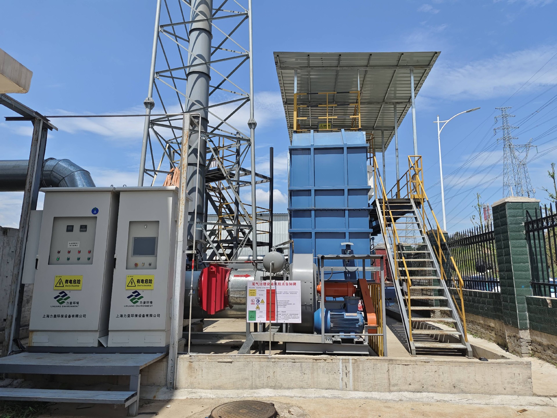 The designed exhaust gas treatment air volume of this project is 10000m3/h, which has the characteristics of high concentration and large fluctuations. The company adopts the "absorption+mixing+RCO" technology, and the exhaust gas is fully mixed through a buffer box before entering the back-end system; The front end is equipped with a falling film absorption tower and a cooling buffer tank to reduce the load of the rear end processing device; After collecting the exhaust gas, it enters the one-way explosion-proof valve and flame arrester to prevent the system from backfiring; Finally, through the RCO regenerative catalytic combustion device, efficient and energy-saving treatment is achieved before reaching the emission standard; The system is equipped with two sets of LEL concentration detectors and emergency adsorption bypass to ensure the safe operation of the device. The RCO process used in this project is a high thermal efficiency, low temperature, no open flame, and high-efficiency catalytic oxidation treatment process that combines the advantages of RTO and CO processes.